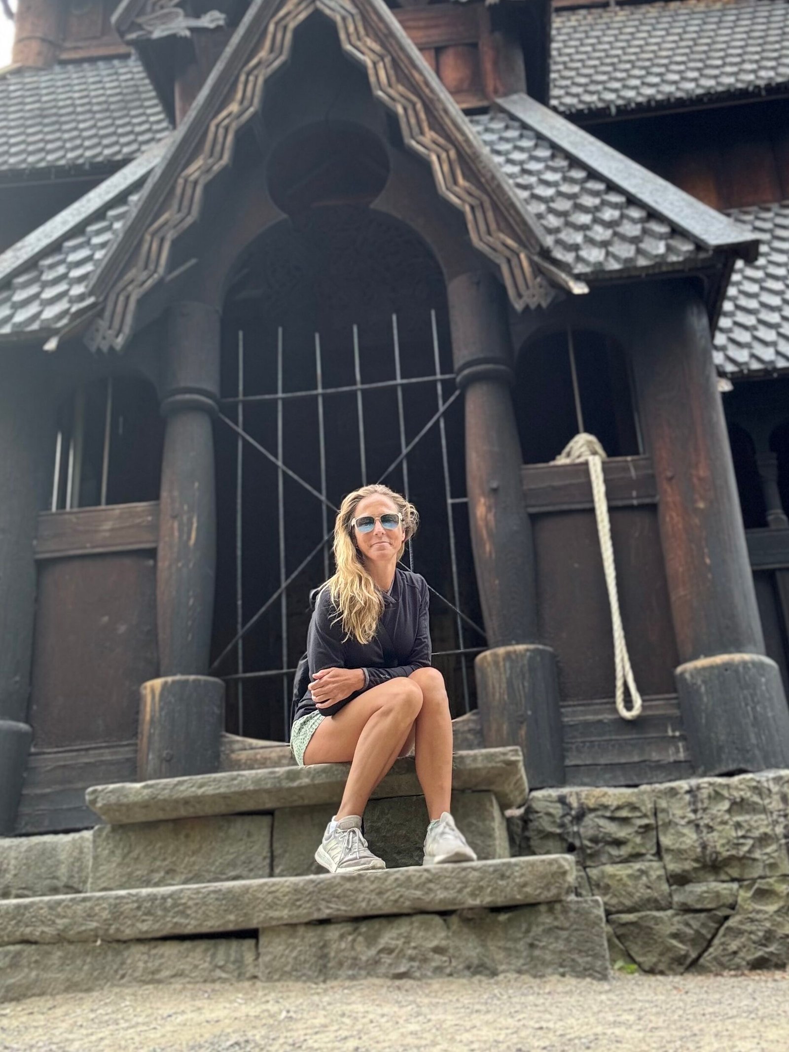 Off I jetted to Scandinavia with no plan except to figure out where to sleep and shop at the local grocery stores. I simply knew I was meant to find something there. Never mind, I don’t speak any language but English and a peu de francais y un poco de espanol. Something about roots was brewing in my heart, and I found myself at the Nordik Folke Museum at closing time. I time-traveled alone along the outdoor museum path, starting with huts and what we would call Viking churches; arches and peaks in dark wood and iron.