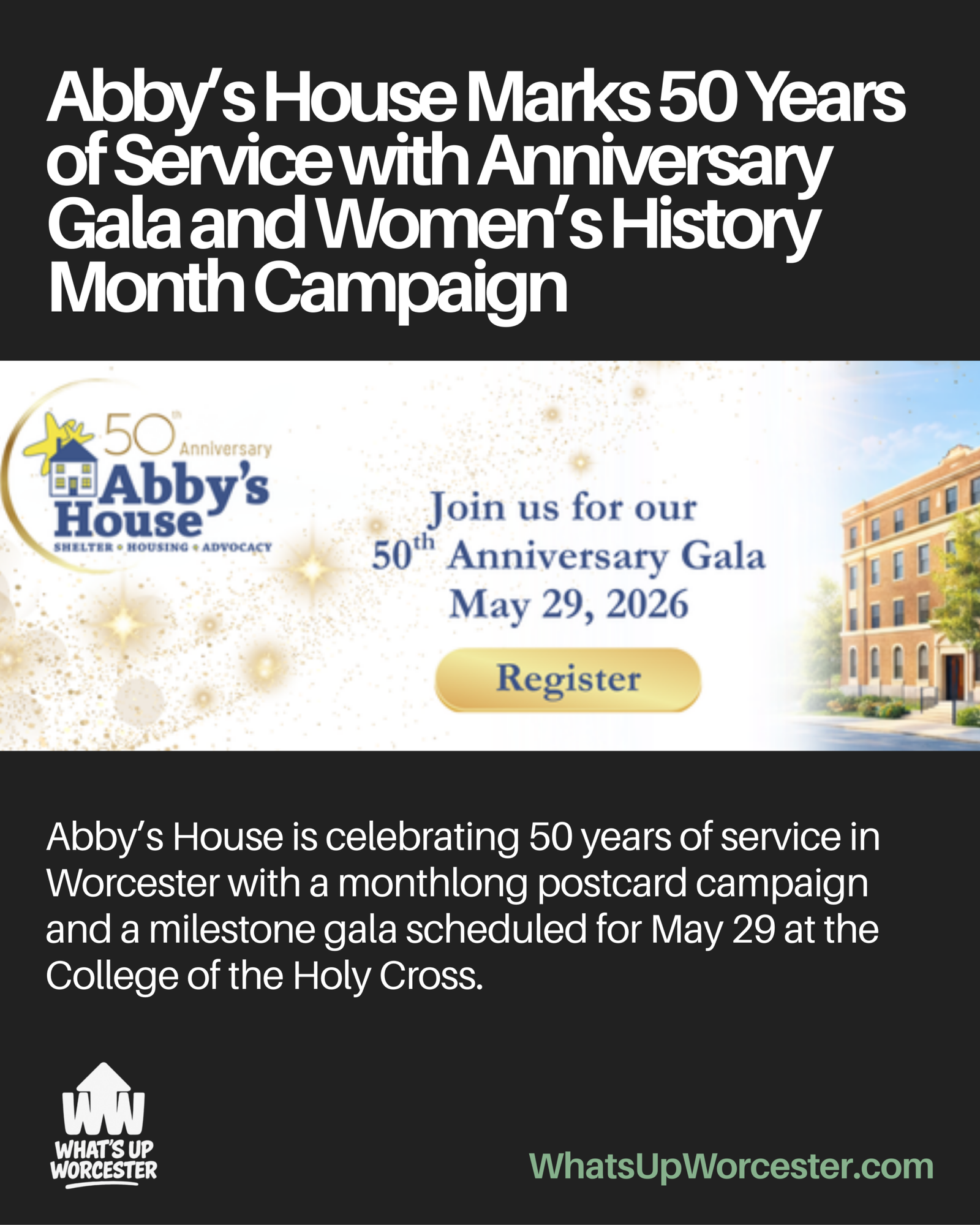 Abby’s House has launched a Women’s History Month recognition campaign connected to International Women’s Day and announced plans for its 50th Anniversary Gala in Worcester on May 29 at the College of the Holy Cross.
