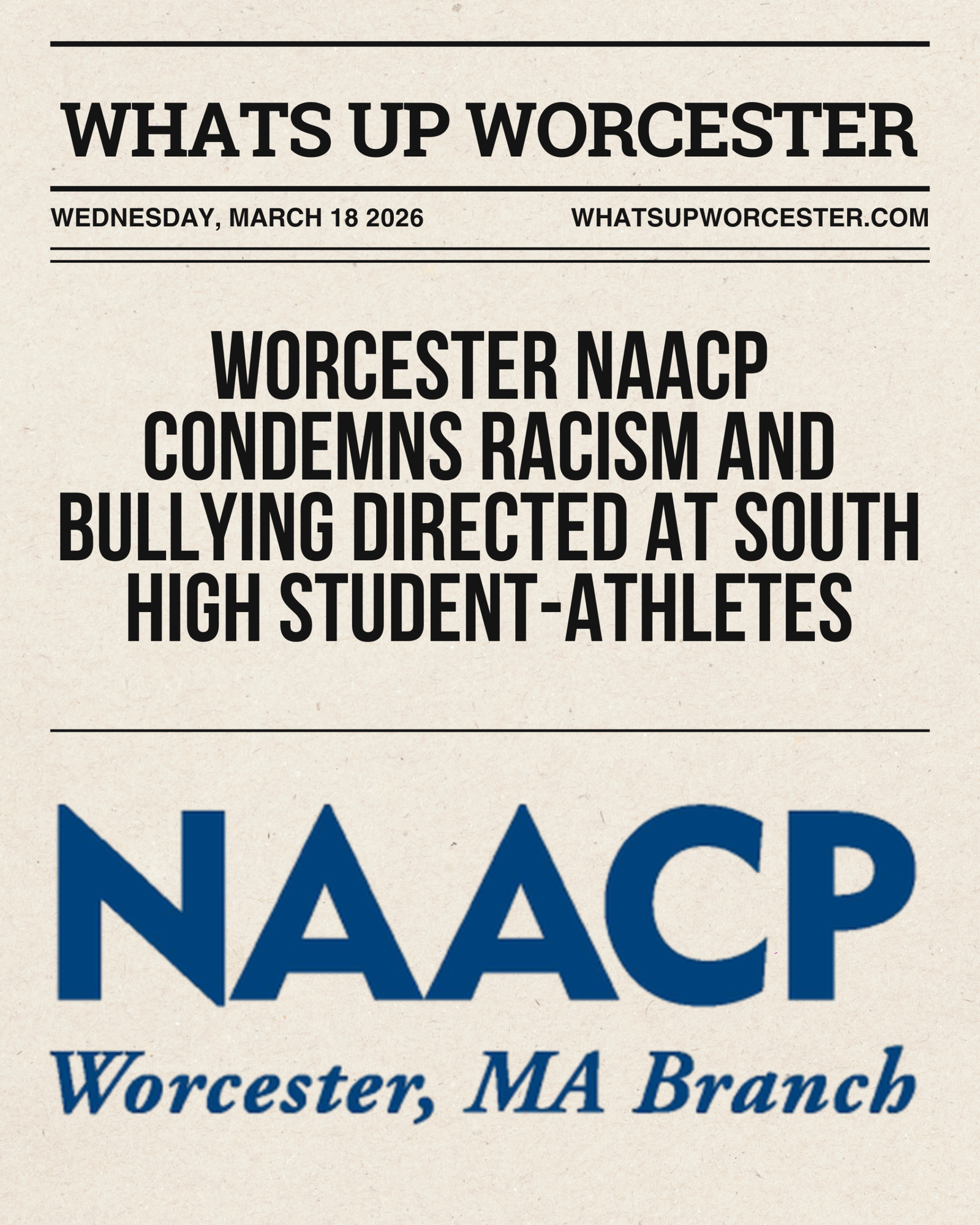 The Worcester NAACP is calling for accountability after reports of racism and bullying directed at South High School student-athletes. The organization is urging a full investigation and emphasizing the need to protect youth in athletic spaces.