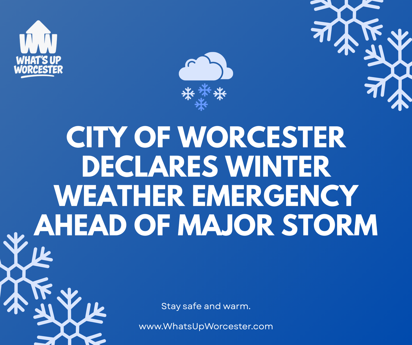 The City of Worcester has declared a Winter Weather Emergency ahead of a major storm, prompting municipal closures, school cancellations, and an ongoing parking ban.
