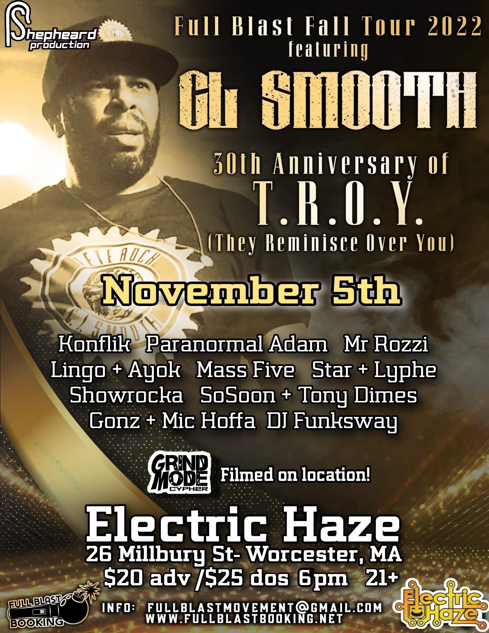 Place: Electric Haze Date: 11/5 Doors at 6pm Music at 7pm 21+ Ticket Link – https://theticketing.co/e/clsmooth-troyalbum With support from: Showrocka, Mr Rozzi, Gonz, SoSoon + Tony Dimes, Star & Lyphe, Paranormal Adam, Mass 5, Konflik and Grind…