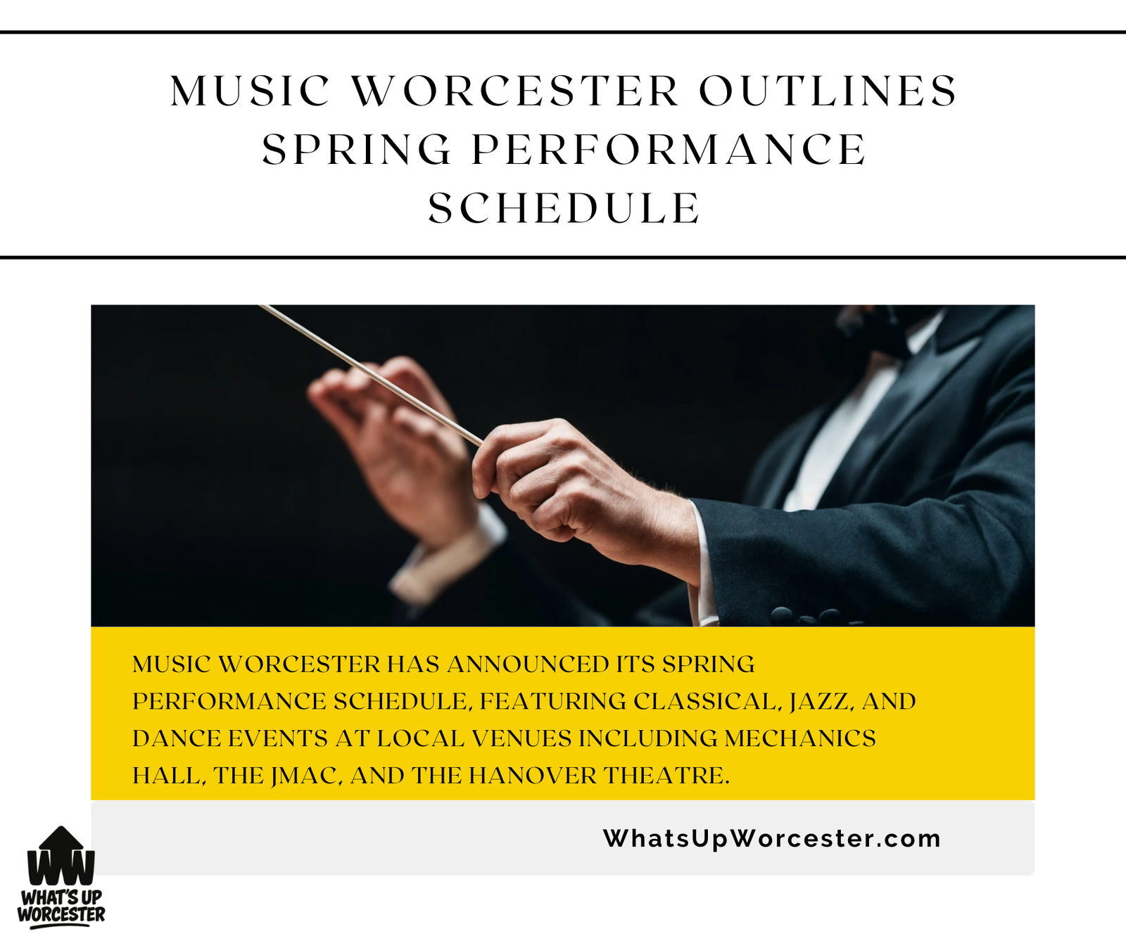 WORCESTER Music Worcester has outlined its spring performance schedule, which will bring a variety of classical, jazz, and dance productions to local venues. The upcoming lineup features international artists and ensembles performing at Mechanics Hall, the Jean McDonough Arts Center (JMAC), and The Hanover Theatre and Conservatory for the Performing Arts.