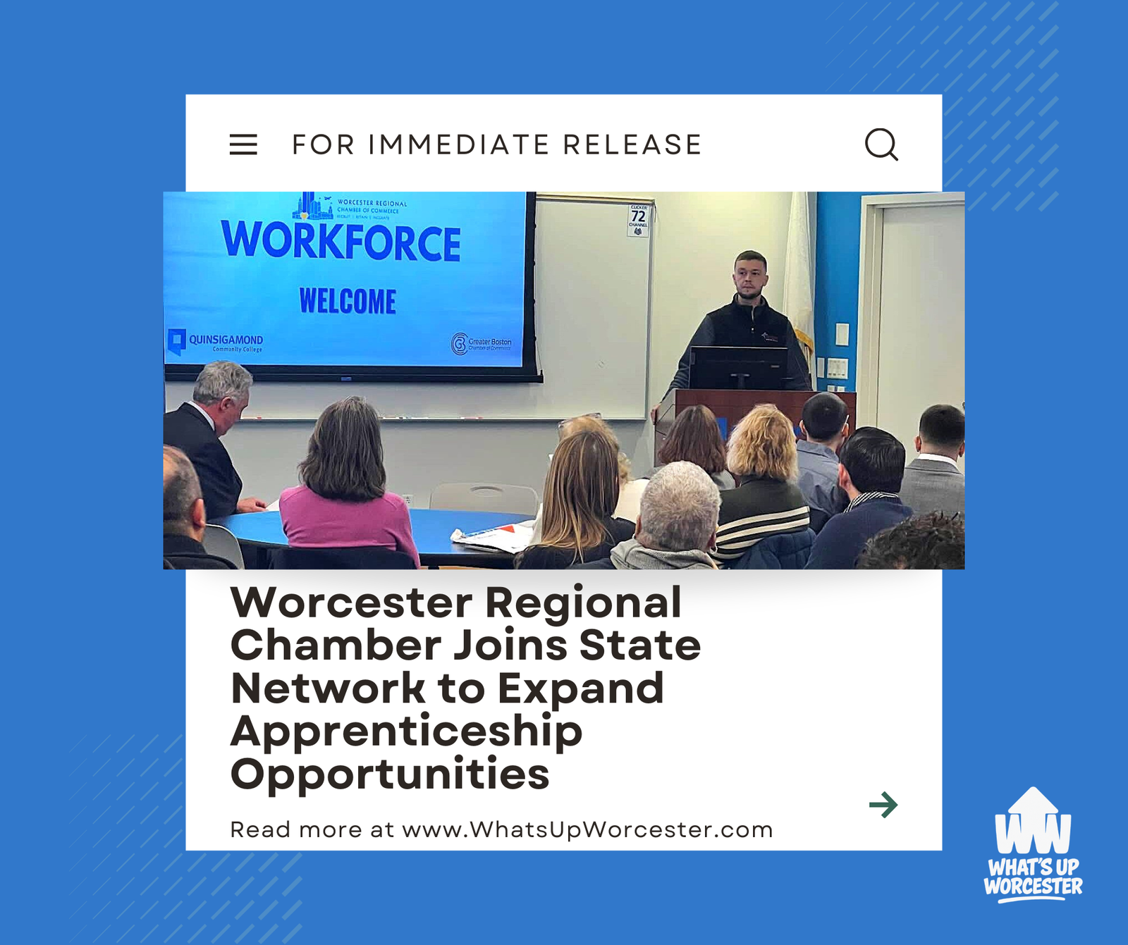 - Project / Topic: Worcester Chamber joins Massachusetts Apprenticeship Network